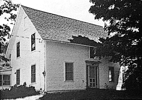 This Georgian plan, Greek Revival style home (1, c.1835) is the largest early house remaining in Goshen. In the later nineteenth century farmer, lumber dealer, and blacksmith T. W. Dutton operated the forge and bellows in the blacksmith shop (1, related) on the farm. Abandoned in the early twentieth century, the farm was resettled and the farmhouse restored in the 1930s, and since the 1940s has been an inn, Blueberry Hill Farm. The original entryway of the house was recently replaced with a new doorway unit.
