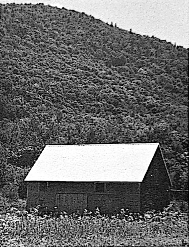 Francis Brown began clearing his farm in 1819. About 1845 he erected this vernacular farmhouse (12) with its Greek Revival style entry. Today the barn built on the Brown farm about 1880 sits in isolation at the edge of the encroaching forest.