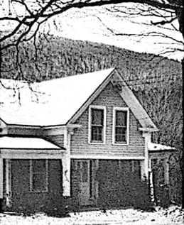 Thoroughly forested and with little arable land, Goshen was one of the last towns to be settled in Addison County. Tales are told of farmers traveling by foot to Pittsford and beyond to obtain grain in the early years. By the 1840s, however, wheat, corn, potatoes, and other crops were successfully grown in the narrow valleys, and a number of farmhouses date from that period. One (3) built about 1845 for C. S. Allen,a descendent of one of the earliest settlers, is a Classic Cottage type farmhouse. Its simple entry entablature with a thin cornice above the door is mirrored on a house (12) built in the same period for Francis Brown, who first settled in 1819 in the region known as Goshen South Hollow. A larger house at Goshen Four Corners (10, c.1850) is distinguished by its central cross gable which projects over the entryway, creating a recessed porch.